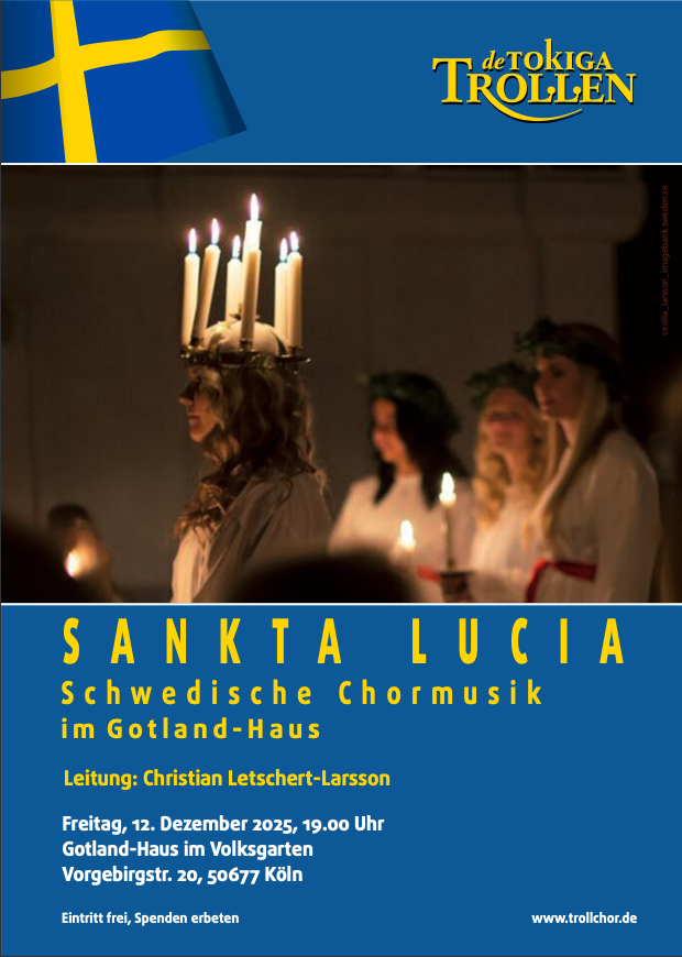 Grund genug für die Trolle, sich auf Lucia – das Fest des Lichts – einzustellen. … Am 12. und 14. Dezember wird es besungen (s. Kalender)